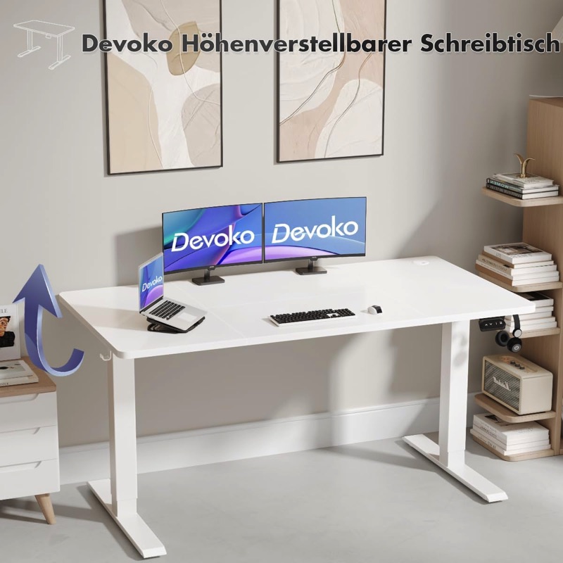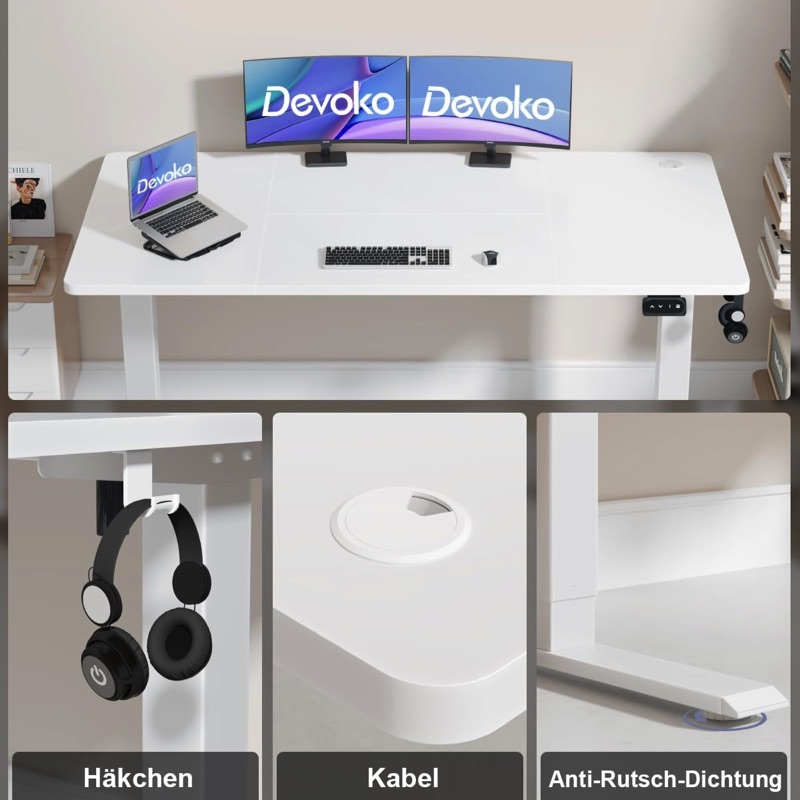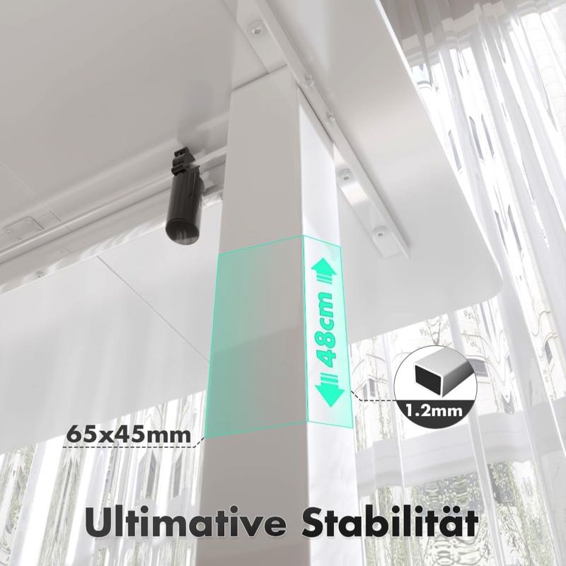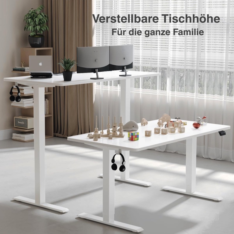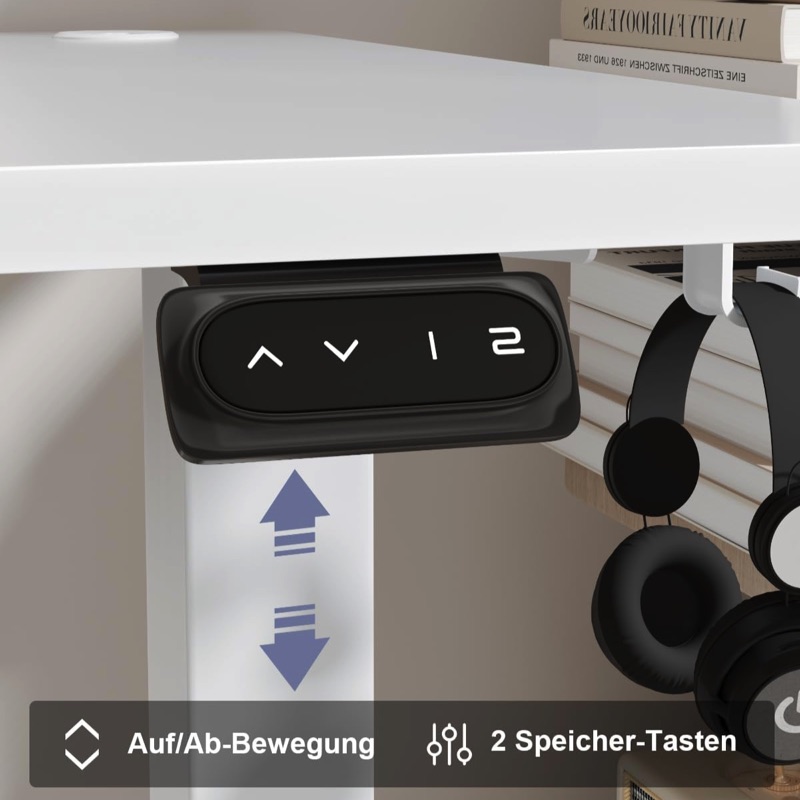 Der höhenverstellbare Schreibtisch bietet eine flexible und ergonomische Lösung für Ihr Homeoffice und Büro. Mit einem stufenlosen Höhenverstellbereich von ca. 73-118 cm können Sie mühelos verschiedenen Höhen wechseln und so Rückenschmerzen und Ermüdung vorbeugen. Das Bedienpanel besitzt zusätzlich eine Memory-Funktion, mit der 2 Tischhöhen gespeichert werden können. Damit können Sie ganz einfach zwischen Sitz- und Stehposition wechseln. Ausgestattet mit abgerundeten Ecken bietet der Schreibtisch nicht nur Komfort, sondern auch Sicherheit. Der praktische Haken ist ideal für Zubehör wie eine Tasche oder Kopfhörer.