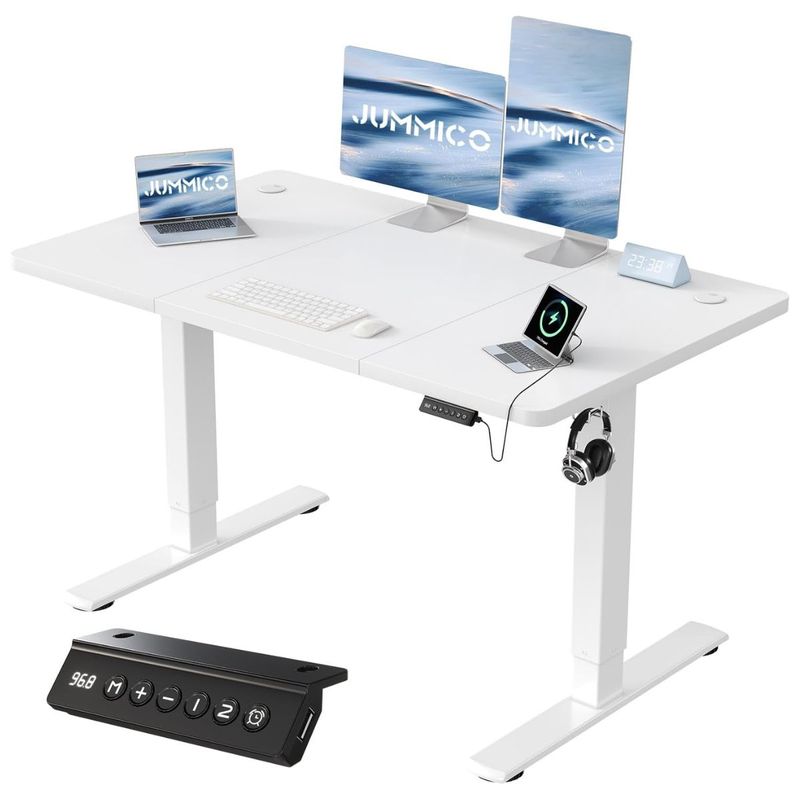 Computertisch Elektrisch Höhenverstellbarer Schreibtisch 120x60cm Weiß Alarm USB