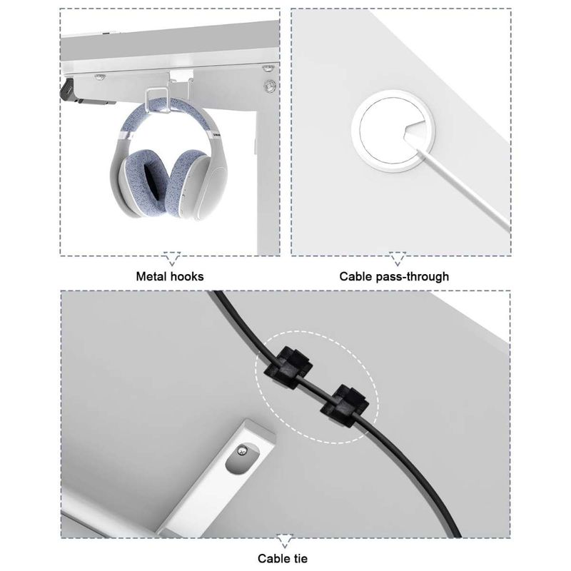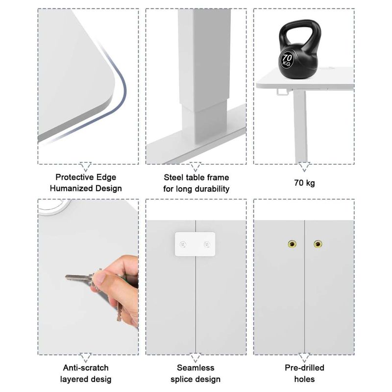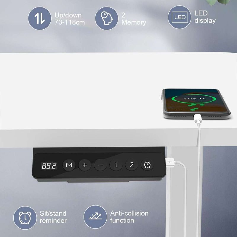 Dieser höhenverstellbare Schreibtisch kombiniert modernes Design mit ergonomischen Funktionen. Der Stehpult lässt sich ca. 73-118 cm in der Höhe verstellen und ermöglicht somit einfachen Wechsel zwischen Sitz- und Stehposition, um Rücken- und Nackenprobleme zu lindern, Konzentration zu fördern und Ermüdung zu reduzieren. Darüber hinaus ist das Bedienpanel mit einer USB-Ladebuchse ausgestattet und verfügt über eine Memory-Funktion, um sich zwei Höhen zu merken. Ein Alarm erinnert Sie an das regelmäßige Wechseln der Position, während der praktische Haken zusätzlichen Komfort bietet. Der Computertisch verfügt über stabile Beine mit einer Tragfähigkeit von bis zu 70 kg, während der leise Motor mit weniger als 50 dB arbeitet.