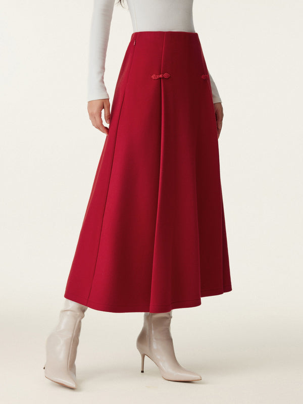OGL - CashSoft Wollähnlicher A-Linien-Midirock mit Froschknöpfen 241128-2149W33