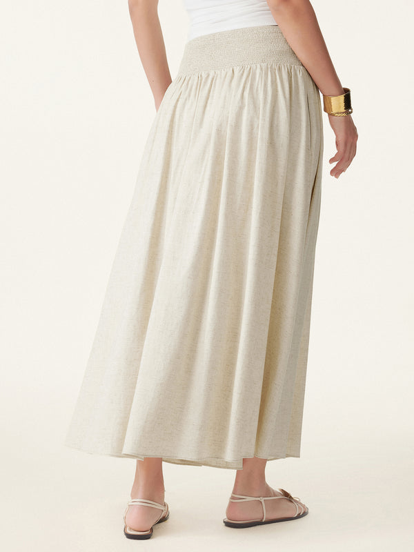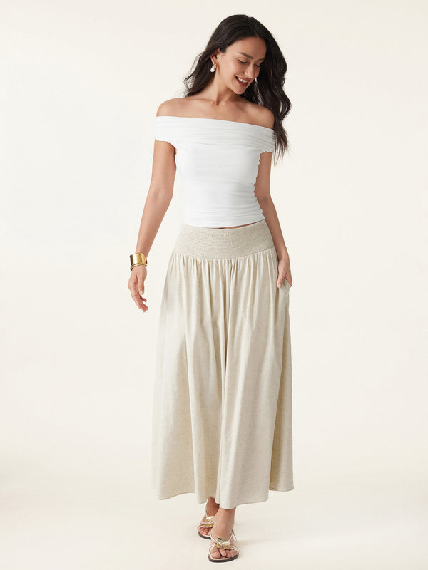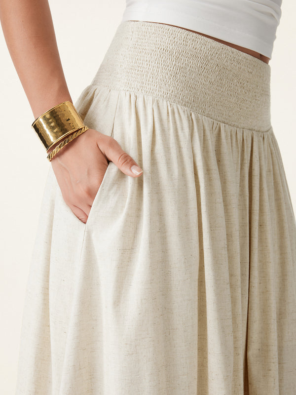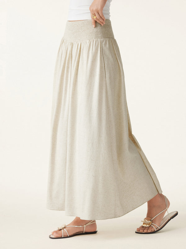 OGLmove - Europäischer Leinenrock mit gesmokter Taille und Taschen 250401-2314W33