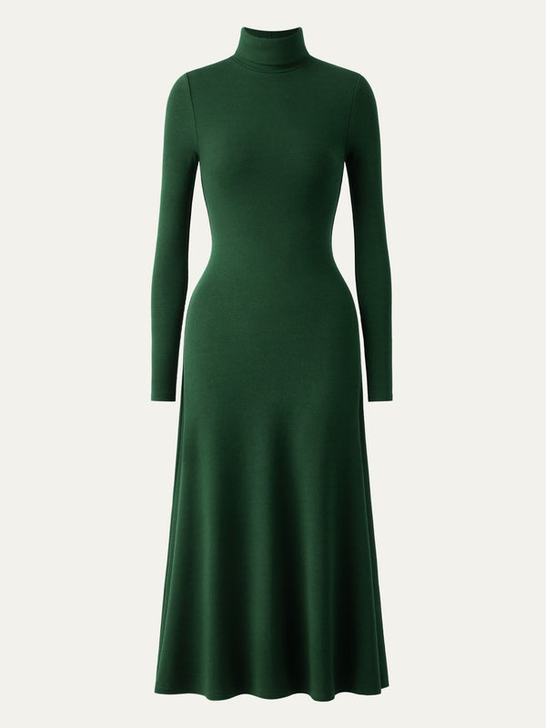 Bleiben Sie gemütlich und schick mit dem Heat-Tech Rollkragen-Midikleid. Das Kleid schmiegt sich an den richtigen Stellen an Ihren Körper und hat einen schmalen Oberkörper, der Ihre Figur wunderschön betont, während der A-Linien-Rock eine schmeichelnde, anmutige Silhouette kreiert, die sanft über die Hüften fällt.