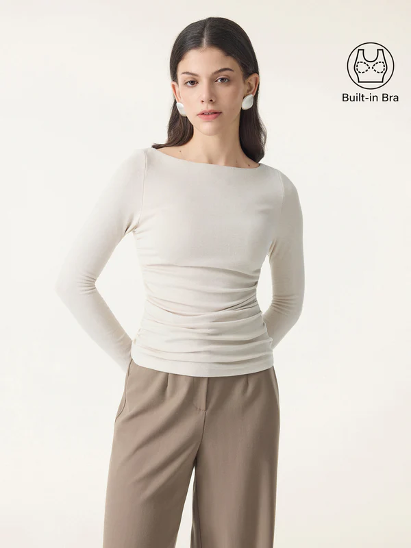 OGLmove - LiteWarm Light Warm Boatneck Ruched Brami Top 250822-2690W22