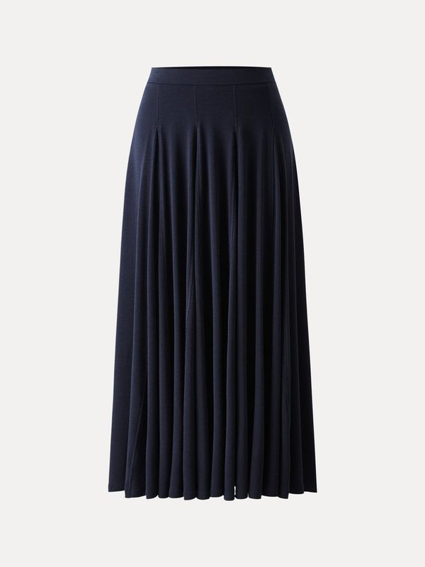 Dieser mittelhohe Rock aus weichem Lyocell-Wollmischgewebe, der sich glatt und gleichzeitig warm anfühlt, wird Sie begeistern. Mit seinem Godet-Saum für anmutige Bewegungen und dem elastischen Bund ist er ein raffiniertes Kleidungsstück, das Komfort und Eleganz perfekt vereint.